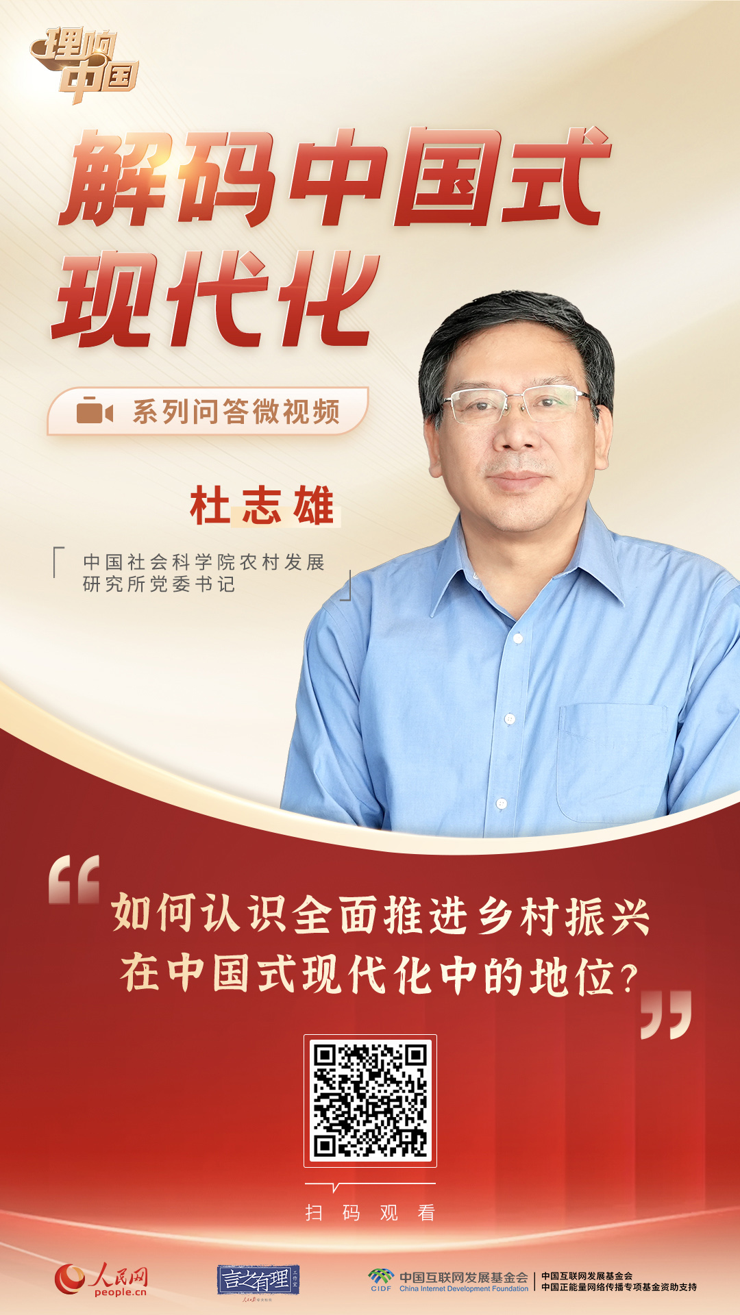為及時(shí)回應(yīng)社會(huì)各界對(duì)中國(guó)式現(xiàn)代化的深切關(guān)注,助力理解和把握中國(guó)式現(xiàn)代化道路的核心要義、豐富內(nèi)涵和實(shí)踐要求,本欄目以網(wǎng)友提問(wèn)+專家回答+具體案例的方式推出20期系列微視頻,深刻闡述中國(guó)式現(xiàn)代化在理論和實(shí)踐上的創(chuàng)新突破。