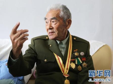 新華網(wǎng)長(zhǎng)春10月17日電(記者 田甜)9月3日,紀(jì)念中國(guó)人民抗日戰(zhàn)爭(zhēng)暨世界反法西斯戰(zhàn)爭(zhēng)勝利70周年大會(huì)在北京舉行。在那場(chǎng)盛大的閱兵式上,一位抗戰(zhàn)老兵在天安門城樓上向受閱部隊(duì)全程起立敬軍禮的一幕,戳中了很多人的淚點(diǎn),無(wú)數(shù)人為之動(dòng)容。近日,記者隨“尋找歷史記憶 緬懷抗戰(zhàn)英烈”采訪團(tuán)來(lái)到這位“敬禮老兵“史保東老人的家中,探訪昔日戰(zhàn)場(chǎng)上的這位鐵血戰(zhàn)士,回憶那段激情燃燒的抗戰(zhàn)歲月。
