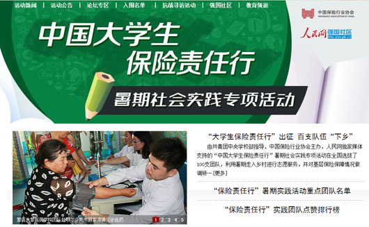 本次活動從全國27個省市100多所高校選拔出100支入圍團隊,在暑期分別以支教、環(huán)保、醫(yī)療、調(diào)研等形式服務鄉(xiāng)村,提高當?shù)鼐用癜踩庾R,提升社會對安全教育問題的關(guān)注,同時開展調(diào)研,了解基層保險保障相關(guān)情況。各團隊實踐期間在人民網(wǎng)強國社區(qū)活動專區(qū)實時播報實踐進程,發(fā)回稿件數(shù)千篇。大學生們積極走入社會、服務基層的實際行動贏得50萬網(wǎng)友為他們“點贊”。