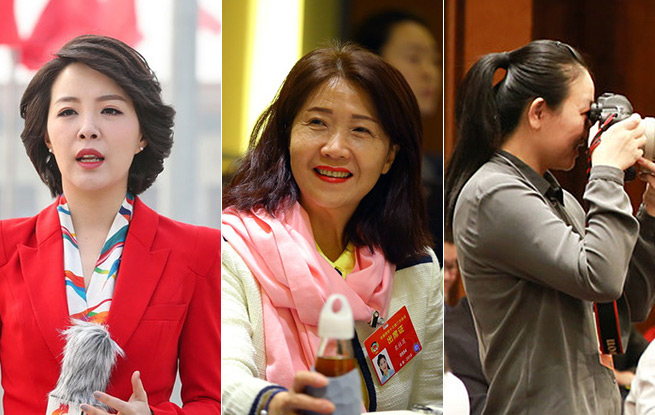 今年兩會期間,女代表委員和女記者構筑起了美麗的風景線。(人民網(wǎng))