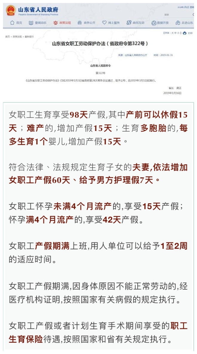 3月1日起,新公布的《山東省女職工勞動保護辦法》施行