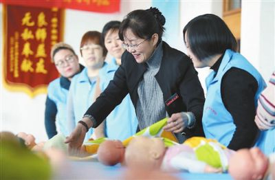 職業(yè)培訓(xùn)學(xué)校老師在給學(xué)員講解育嬰知識。(來源:新華社記者 王曉 攝)