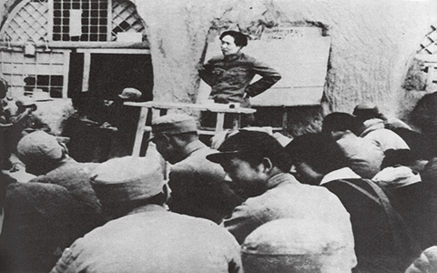 延安整風(fēng)期間我們黨強(qiáng)調(diào),反對(duì)主觀主義以整頓學(xué)風(fēng),反對(duì)宗派主義以整頓黨風(fēng),反對(duì)黨八股以整頓文風(fēng)。圖為整風(fēng)運(yùn)動(dòng)時(shí),我軍某部連隊(duì)指導(dǎo)員在給戰(zhàn)士們講課。